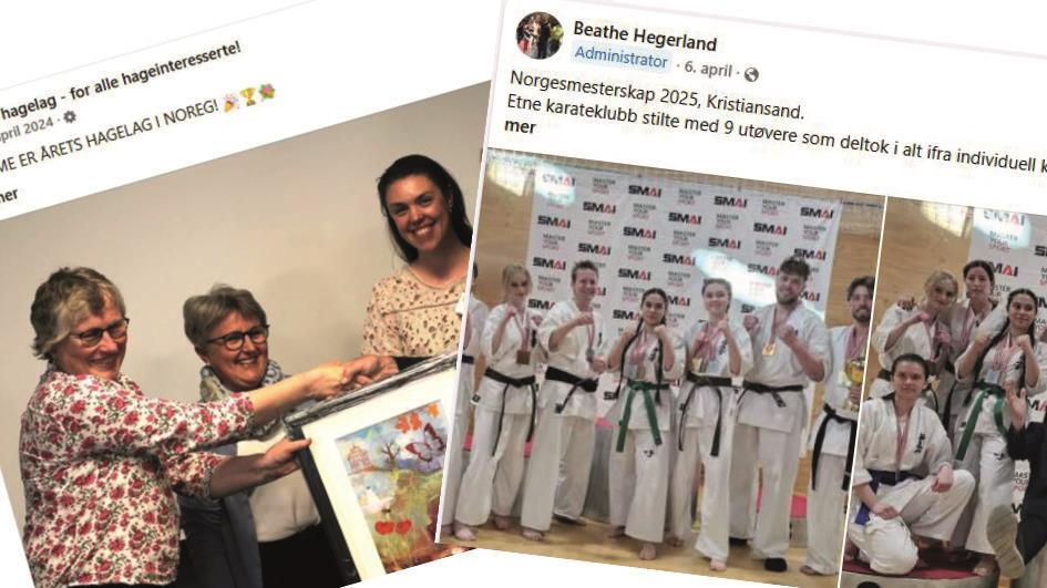 Skjermdumpar - Klikk for stort bildeKommunen har mange einskildpersonar og grupper/lag som markerer seg både nasjonalt og meir til for enkeltpresentasjonar eller innsats over ei årrekke. Desse kan nå få ekstra heider, og unge talent kan i tillegg søkja stipend for å utvikla talentet sitt. Skjermdump få Facebooksidene til Etne Hagelag og Etne Kyokushin Karateklubb