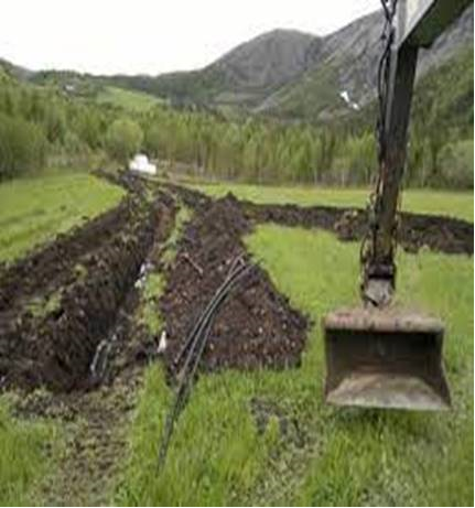 Gravemaskinskuff framfor grøfter - Klikk for stort bilde